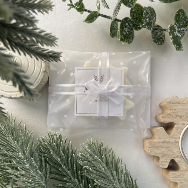 Each bag contains 4 melts of the same scent. Packaged in one of our pretty bags and wrapped with white satin edge organza ribbon.
